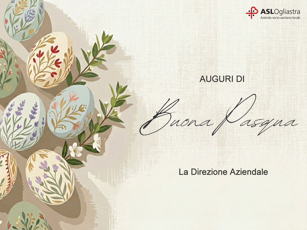 La Direzione aziendale della Asl Ogliastra augura ai cittadini del territorio, ai dipendenti e collaboratori dell’Azienda e alle loro famiglie, una buona e serena Pasqua.
